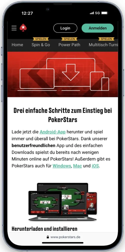 Um die pokerstars App auf Android zu nutzen, müssen Sie die apk herunterladen und die Installation erlauben. Öffnen Sie die Einstellungen, erlauben Sie unbekannte Quellen und starten Sie danach die Installation. Nach dem Installieren können Sie Spiele spielen, Einzahlungen vornehmen und Bonusangebote direkt in der App nutzen, sicher und schnell, komfortabel.